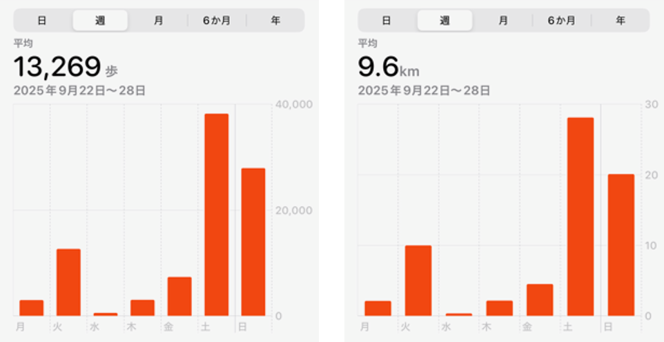 でした。前週は歩数は平均22,764歩、距離は平均16.6㎞だったので、歩数・距離共にダウンしました。
