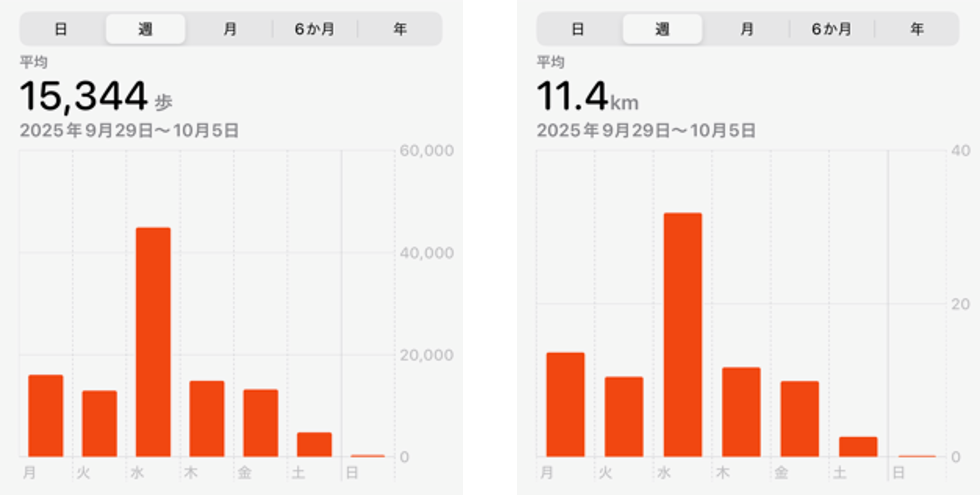 でした。前週は歩数は平均13,269歩、距離は平均9.6㎞だったので、歩数・距離共にアップしました。